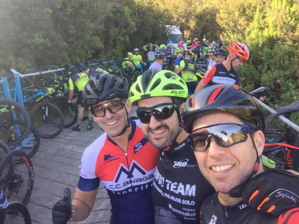 Ahí, cuando todos sufrimos como nunca, il capiTANO, acostumbrado como está, resopla, se resigna y arranca reventando una pequeña grupeta y llevándose a rueda a uno de ellos. A David, sin fuerzas y sin fuelle sólo quedaba apretar los dientes, buscar un ritmo y tirar, mirando al frente y encontrar alguna referencia. Finalmente, nos agrupamos en el primer avituallamiento junto con nuestro amigo Ramón, un triatleta, con cabeza dura y piernas de sobra. La siguiente vez que lo veríamos, sería en Meta, con su sonrisa y enseres para una ducha. Se nota que la logística Gofio aún no le ha calado… al tiempo!!