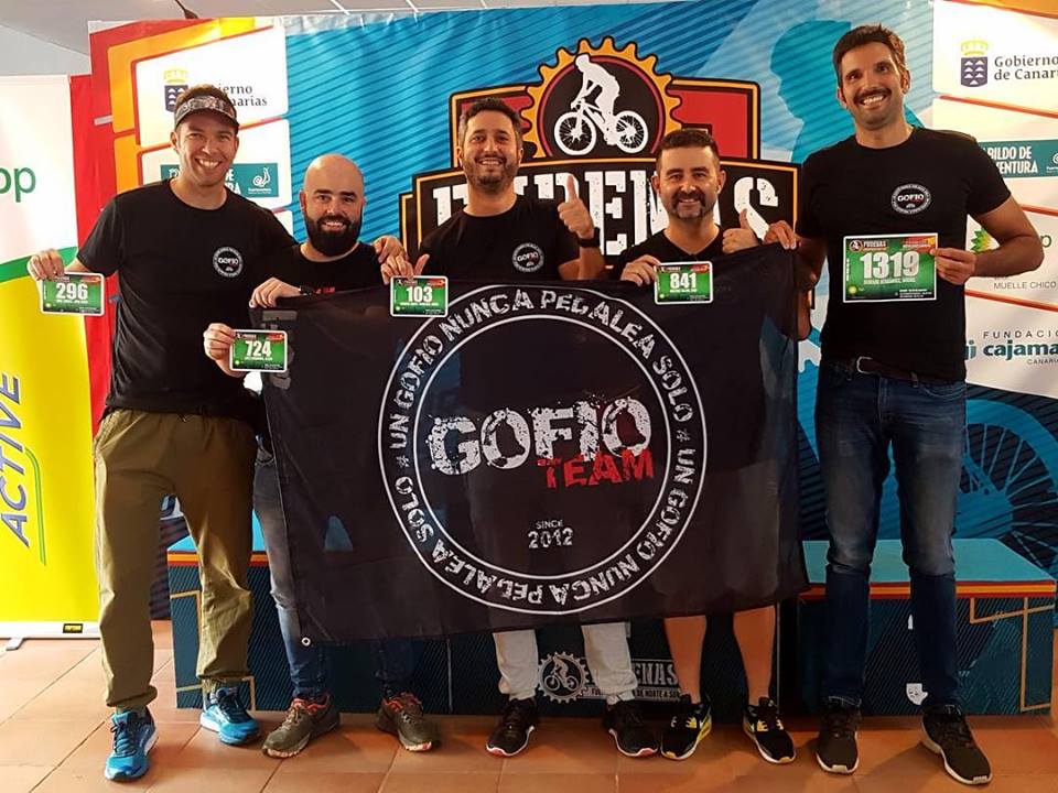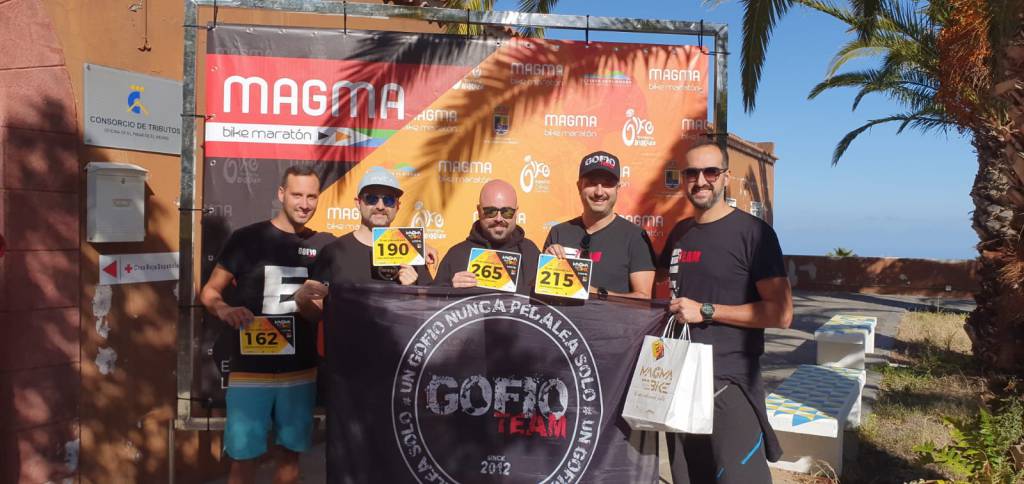 Todas las generaciones tienen una leyenda… Como no podía ser de otra manera, el Gofio Team partió rumbo a la isla del meridiano para participar en una carrera que siempre tiene un encanto especial; sin lugar a dudas #Magmabike es, por lo decirlo de alguna manera sin ofender al resto, la mejor carrera del archipiélago. Con esa premisa, partió la expedición del equipo a tierras herreñas con los nervios propios de novatos y habituales de la carrera, comenzaron los preparativos; recogida de dorsales y con algo de tiempo para descubrir una isla tan pequeña como encantadora y atractiva. Con las instrucciones claras de nuestra directora de equipo Nuria “pedalear, disfrutar, y llegar enteros a La Restinga” los nueves integrantes del equipo que este año participó en la carrera recogieron sus bicicletas; unos con la ilusión de su primera participación y otros con la lección aprendida de años anteriores en los que disfrutar y sufrir se confundían en el imaginario Gofio. Todos juntos en una salida neutralizada en la que estaban las mejores monturas de Canarias, dio comienzo la carrera a las 9.45. Gofio Team rodaba junto, disfrutando de unos nervios que, sin saberlo, presagiaban un día épico, de épicas consecuencias. Nunca se puede tener todo controlado y así, nuestro muy querido compañero Andrés Fuentes vio como su bicicleta dijo basta. El ojo experto de Jesús le advirtió que había roto el núcleo, el condensador de fluzo y hasta el alma de sus dos ruedas… Las cosas no empezaban nada bien para el equipo; una de nuestras mejores bazas en carrera y en la plaza veía como sus opciones de competir se esfumaban sin remisión, pero… en situaciones desesperadas aparecen los héroes! Pablo, que lo había visto todo desde la barrera, se ofreció a dejarle su bicicleta: un misil con doble suspensión del que a Andrés le costó separarse. Al final, con alguna lágrima se la devolvió a su legítimo dueño (mil gracias de parte de todo el equipo @saraadortaa) Así, aún con la mirada en el retrovisor maldiciendo la mala suerte de Andrés y sin tener nuevas noticias de él, partió la carrera y el grupo poco a poco se fue recolocando, buscando su propio ritmo, sensaciones y buscando una rueda amiga. La frase que todo corredor de la Magma grabó a fuego llegó como un mazazo: “plato pequeño, piñón grande, aprieta el culo y dale duro”; apenas si habían discurrido 11 km, y las piernas aún en frío comenzó la cronoescalada. 10 km de permanente ascensión con repecho inicial que te hace plantear por qué te gusta sufrir encima de la bicicleta… simplemente, nunca encuentras la respuesta y hoy, varios días después tienes ganas de repetir! Así, entre pinos, laurisilva, senderos técnicos y bajadas rápidas, rodeados de hierba alta o entre bosques tupidos fuimos pedaleando en una continua lucha entre cuerpo y mente. Cuando el cuerpo decía basta, la cabeza tiraba un poco más repitiendo eso de “no querías mountain bike, no querías mountain bike…” La satisfacción de llegara meta siempre puede más! Y de repente, en medio del crujir de las ruedas en la pinocha y de las respiraciones agitadas que denotan el esfuerzo de todos, de la nada retumba unas frases que marcan el ADN del Gofio Team: “un gofio nunca pedalea solo…”, “ un gofio sólo sabe pedalear, pedalear y pedalear…”; “un gofio no se queja, solo pedalea y sufre”… Como un rayo en una noche despejada aparece Andrés, con una bici prestada a la que nada ha tenido que hacer, empujado por una renovada ilusión que va dejando ciclistas a su espalda. LEGENDARIO!! Salió de El Pinar con 20 minutos de retraso de la salida oficial, y ahí comenzó su carrera, subiendo, adelantando, sufriendo… pero sobre una doble todo se ve diferente. Entre vistas espectaculares, con el Teide de fiel testigo, con un público entregado al esfuerzo de todos, y con el dilema entre el deseo de llegar a meta y de que nunca se acabase esta edición, comenzó el último tramo de bajada; 19 km de velocidad, control y tensión hasta llegar a la plaza de La Restinga, donde el Gofio Team si que nunca tiene rival.Y así, poco a poco fueron llegando todos los integrantes del Gofio Team a meta; una meta que para todos significó un nuevo paso al frente y descubrió nuevos desafío superados; una meta que siempre colmó las aspiraciones de los más incrédulos, de aquellas y aquellos que siempre están detrás de nosotros y que nos empujan aunque no los veamos, ya sea desde la meta con un libro en la mano y una cerveza en la otra, a aquellas que estaba en casa rezando para que volviéramos enteros, de aquellos que se quejan de subir mal, de los que bajan como un rayo, de los que día a día superan dolores de espalda, cuello y muñecas marcando el camino alos demás, de los grandes que bajan como niños con bicicletas nuevas, de aquellos que mejoran en el temido jable oyendo a la voz de la experiencia y de como un simple gesto de los talones puede hacer que vueles, de ese pibe que anda bastante, que es un valor seguro y que todo equipo debería tener uno, que ganó a su cuerpo con una mente tan fuerte como avispados y esperados son sus comentarios, de un nuevo integrante del Gofio Team que parece un viejo amigo que se reencontró con lo que buscaba en un equipo, de uno que aprende de todos y cada uno de ellos y que sin frenos, algo que le era de sobra conocido, llegó a meta, y por supuesto, de uno que superando todos los retos propios y ajenos, voló hacia La Restinga, celebrado un día especial de cumpleaños donde salió todo a pedir de boca y donde una vez más la familia GOFIO TEAM demostró que “UN GOFIO NUNCA PEDALEA SOLO”.