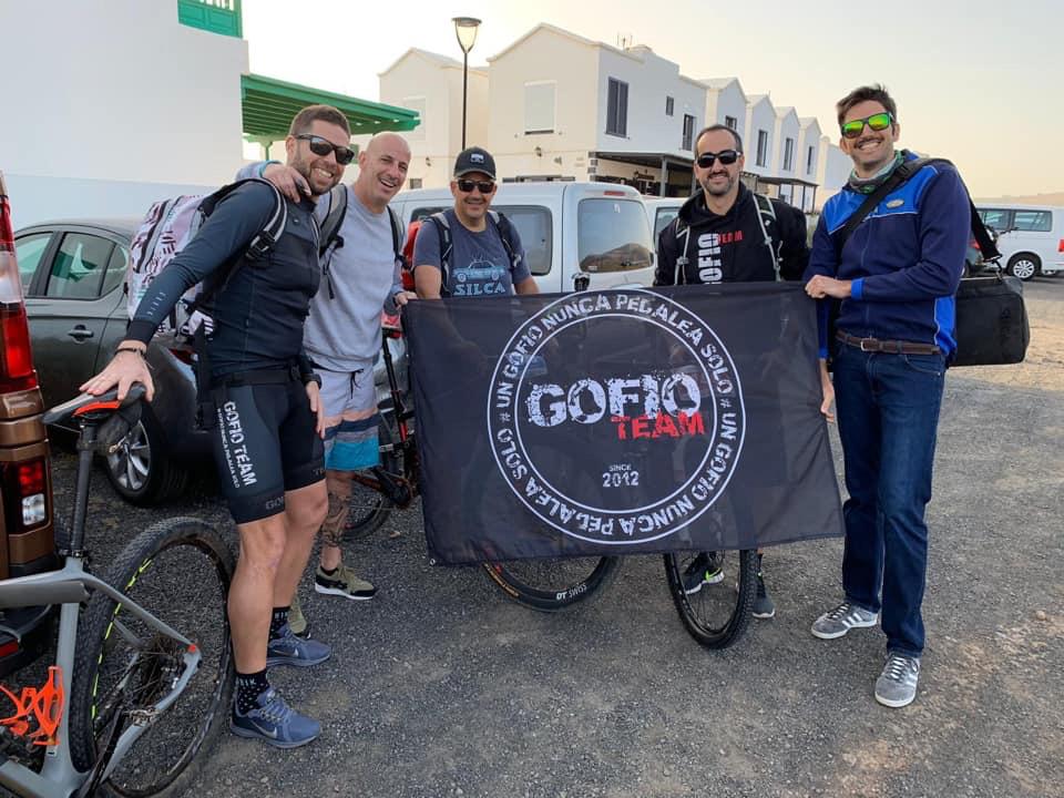 Sólo l@s ciclistas conocen esa inexplicable sensación. Llevas meses entrenando para una carrera, una meta. Entrenas, comes, inviertes en tiempo y dinero y no piensas en otra cosa más que en esa carrera, esa meta. Y cuando en plena carrera llega el inevitable sufrimiento, porque siempre se sufre, piensas si ha valido la pena, que a ti no te pillan más, que no hay necesidad de esto, si tu no eres un PRO para qué estas palizas. Llegas a meta y ¿qué haces al día siguiente? Pues vas y ¡te apuntas a otra! La pregunta de por qué al día siguiente estás mirando el calendario de carreras para ver a cual te apuntas, no tiene respuesta lógica. O por lo menos para l@s no ciclistas. Pero así somos. En nuestro caso, salimos muy eufóricos de FUDENAS 2018, nos engolosinaron con apuntarnos a la ULTRABIKE LANZAROTE 2019 y, por supuesto, caímos. Nos aventuramos a la Ultra pero no caímos que tras FUDENAS vendrían las Navidades y que las tardes de invierno se acortan, no dando tiempo a entrenar entre semana. Así que la supuesta forma que llevábamos en FUDENAS desapareció casi por completo. Pero «los gofios» somos unos guerreros y nos fuimos a la Ultra con muchas ganas de descubrir rutas nuevas.