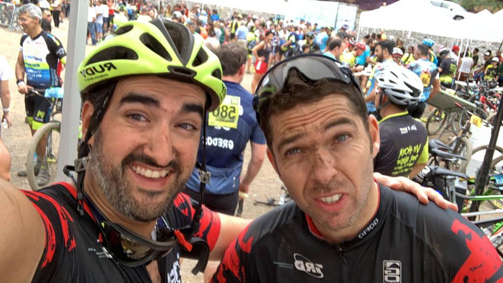 Los Gofios más noveleros acudieron a la “olla” del Abade. Una carrera con solera y que a cada edición se supera, con una organización y cuidado del ciclista que hacen que el descenso final, complicado, rápido y técnico, sea mucho más llevadero. Con un ejercicio de logística propio de los Gofios, Tano y David, que se dejó los bidones con agua congelada en algún lugar de su congelador, comparecieron en la salida; uno, con los deberes a medio terminar y el otro, sin haber ido a clase. Todo suma… A las 9.30, puntual, dio comienzo la salida con una pendiente en La Vica, donde no sólo las rampas sino también la destreza para no descalarte centraron los esfuerzos por alcanzar las pistas y liberar un poco de tensión. La alegría duró poco y a los pocos cientos de metros comenzábamos la ascensión por El Rincón hasta la carretera TF-24. Ahí, cuando todos sufrimos como nunca, il capiTANO, acostumbrado como está, resopla, se resigna y arranca reventando una pequeña grupeta y llevándose a rueda a uno de ellos. A David, sin fuerzas y sin fuelle sólo quedaba apretar los dientes, buscar un ritmo y tirar, mirando al frente y encontrar alguna referencia. Finalmente, nos agrupamos en el primer avituallamiento junto con nuestro amigo Ramón, un triatleta, con cabeza dura y piernas de sobra. La siguiente vez que lo veríamos, sería en Meta, con su sonrisa y enseres para una ducha. Se nota que la logística Gofio aún no le ha calado… al tiempo!! Tocaba bajar hasta El Rayo nuevamente en dirección a los senderos. Mucho polvo, terreno muy suelto y caídas que veías, oías o intuías. Muchos compañeros de fatigas tuvieron que retirarse por diversos problemas físicos, golpes de calor, deshidratación pero también mecánicos. La dureza de la carrera en sí se vio multiplicada por las condiciones meteorológicas, la “OLLA” del Abade subió la temperatura hasta los 36º de cocción. La parte más divertida se vio empañada no sólo por el polvo sino por las caídas que hicieron que el pie a tierra fuera la nota predominante en los dos tramos de los senderos de La Vica. Ya allí, Tano, con fuerza y determinación arrancó definitivamente aprovechando su potencia en la subida, los senderos angostos, y despegó. Mientras, David, sin piernas, sin agua y casi sin cabeza, renqueaba mirando como la marca de sus cubiertas tardaban una eternidad en volver a pasar delante de sus ojos. Volviendo por la zona de Las Calderetas, sabes que tienes tu coche aparcado a apenas 400 metros y continuar es de Gofio, de auténtico Gofio, sufridor. Aún con el desvío en la mente, decides continuas con la vista fija en el suelo, en el GPS y en buscar alguna referencia. Como siempre, algo habitual ya, cada uno rodó mucho tiempo solo, a solas con sus pensamientos y en las ganas de cruzar la meta. Cuando llegas al último avituallamiento, km 43, tu cuerpo escombro se arrastra buscando agua como en el desierto y Tano, al que le había dado tiempo de echarse una siesta y saludar a casi todo el pelotón esperando por David, rellena sus bidones, le pasa fruta, algo de azúcar y un bidón nuevo. Salieron juntos nuevamente; Tano, como si lleváramos 15 km de paseo con los amigos, marca el ritmo. “Capi, no puedo, voy fundido, gracias por esperarme pero tira tú, nos vemos en meta, cuenta con ello”! Menuda bola le mandé; si hubiera sabido cómo volver a Las Calderetas, no me ven en La Victoria ni de coña! Km 43 y piensas “bueno, de aquí a la Victoria sí que es todo bajada…”. Principal mentira del ciclismo: “nunca es todo bajada”. Así vamos a Fuente Fría, ¡dios, cómo odio esa pista, no me gusta ni el color de la gravilla! Subimos a Pino Carretón y sin saberlo porque la logística Gofio nos invita a ir así, a lo loco por estas carreras de dios, nos esperaba Pata del Guanche. Una última subida y ya sí que sí, todo bajada: MENTIRA. No había noticias de Tano, el capitán, buque insignia donde esté, iba con velocidad de crucero directo a meta, con la mente puesta en su verdadera grupeta, esa que siempre está ahí, empujando y esperando, esperando y empujando. Bajó tan rápido, con tantas ganas, que se saltó el desvío de bajada y regaló, juntos con otros exploradores, varios km de más. Sobrado! David, en mitad de la nada, decidió posarse y hacer un picnic en mitad de la pista Pata del Guanche; un poquito de agua, un fisco de isotónico, unas barritas, sal, geles, todo lo que trancó. En este deporte siempre la solidaridad prima, y todos y cada de los que pasaron a mi lado, me preguntaron cómo estaba y si necesitaba algo. Ninguno traía cerveza así que los dejé marchar con una sonrisa y un “gracias”. Llegado al cruce de El Rincón, ahora sí, tocaba bajar, era el momento! Con 50km en las piernas no disfrutas igual pero había curiosidad por conocer nuevos senderos, el barranco urbano y la llegada a meta. Senderos muy técnicos, S lentas y sueltas dieron paso al barranco urbano, túnel y pasarela de madera hasta entrar en las calles de La Victoria, donde el parque urbano y su mini circuito nos llevaron hasta la línea de Meta. Allí, exhaustos, con el polvo aún en suspensión a nuestro alrededor, preguntamos por los nuestros, sonreímos por haber acabado y nos abrazamos al ver que una vez más, la logística Gofio, esa que mide el poder de la cabeza y el corazón, volvió a rendir a pleno pulmón y nos llevó, a unos mejor que a otros, hasta el Corazón de La Hoya del Abade.